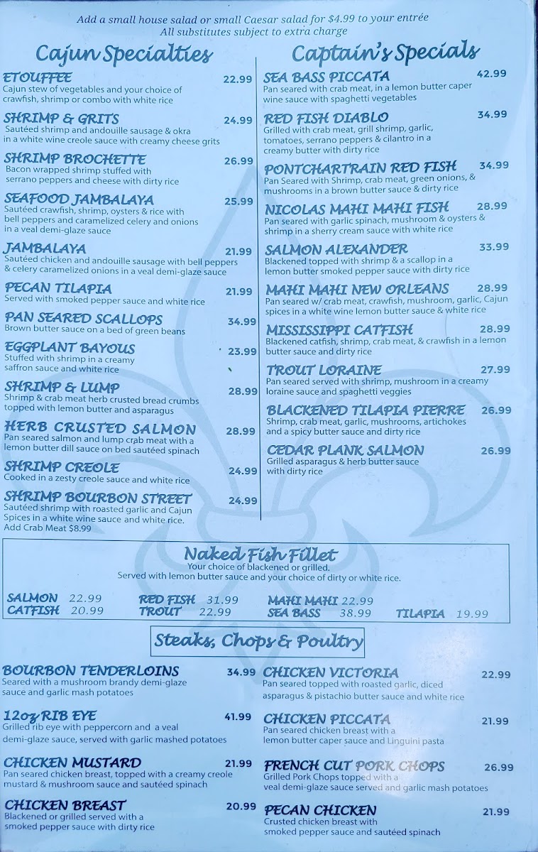 Your choice of blackened or grilled. Served with dirty rice. (Salmon)